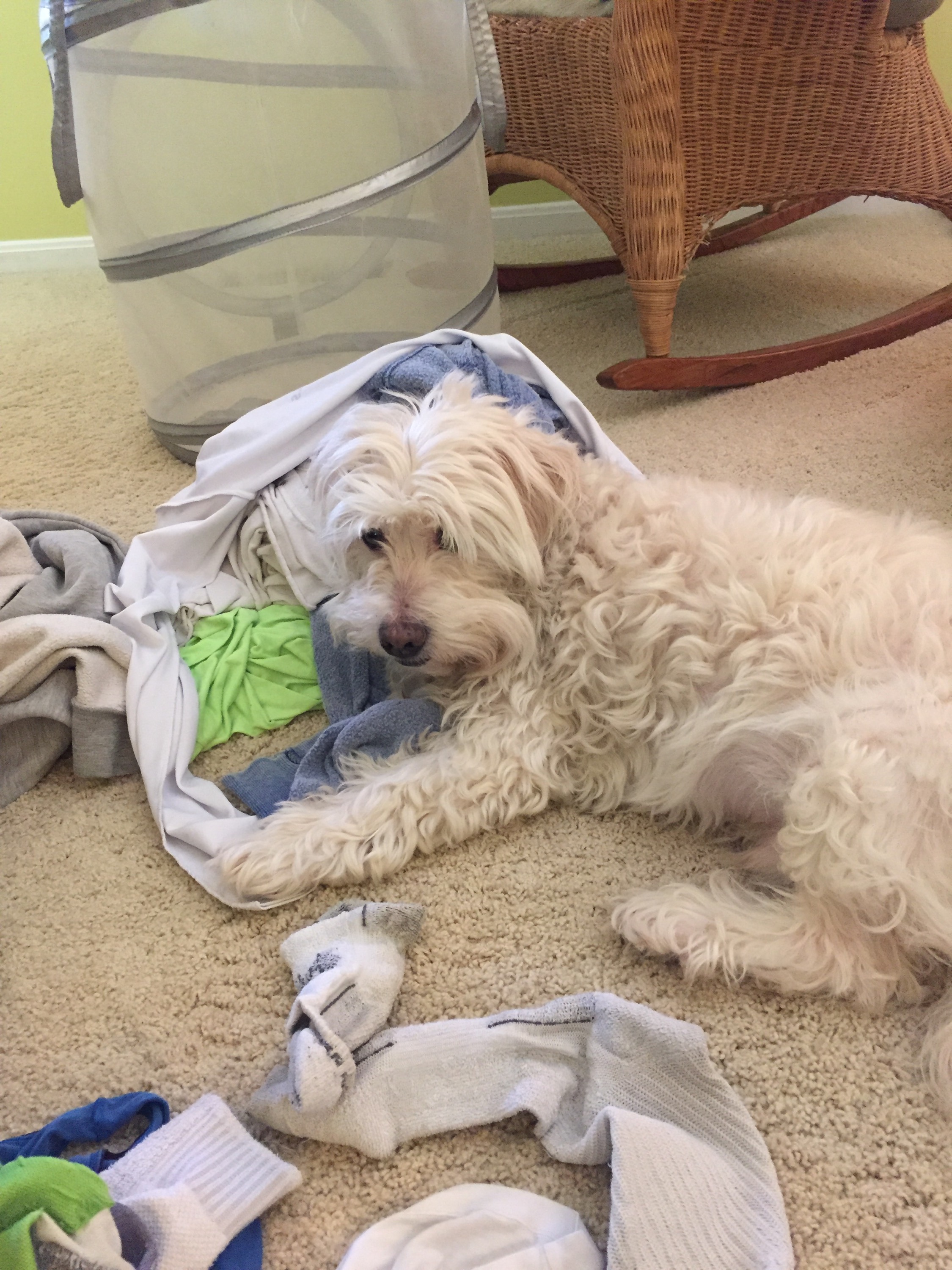 As I tried to pack today, my dog, Oscar,was less than thrilled about my departure. He laid right on top of my clothes making it real hard to pack anything- and left his hair all over everything while he was at it. A little something to remember him by I guess.